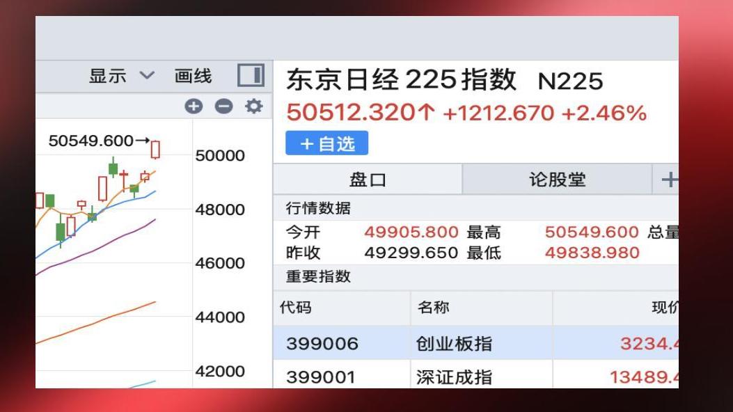 日經(jīng)225指數(shù)暴漲超1200點(diǎn),史上首次漲破5萬(wàn)點(diǎn)