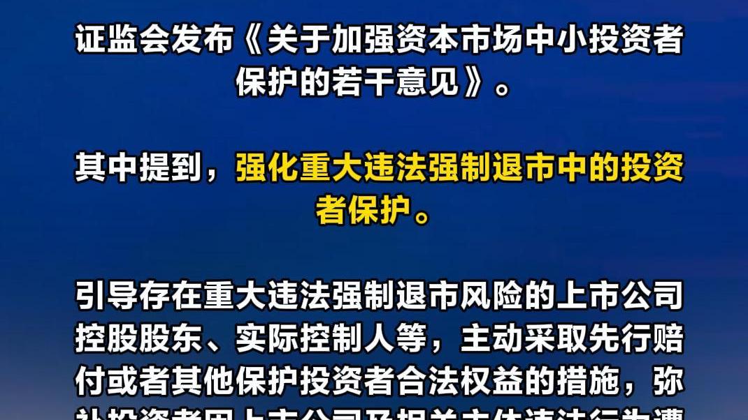 ?證監(jiān)會(huì):強(qiáng)化重大違法強(qiáng)制退市中的投資者保護(hù)