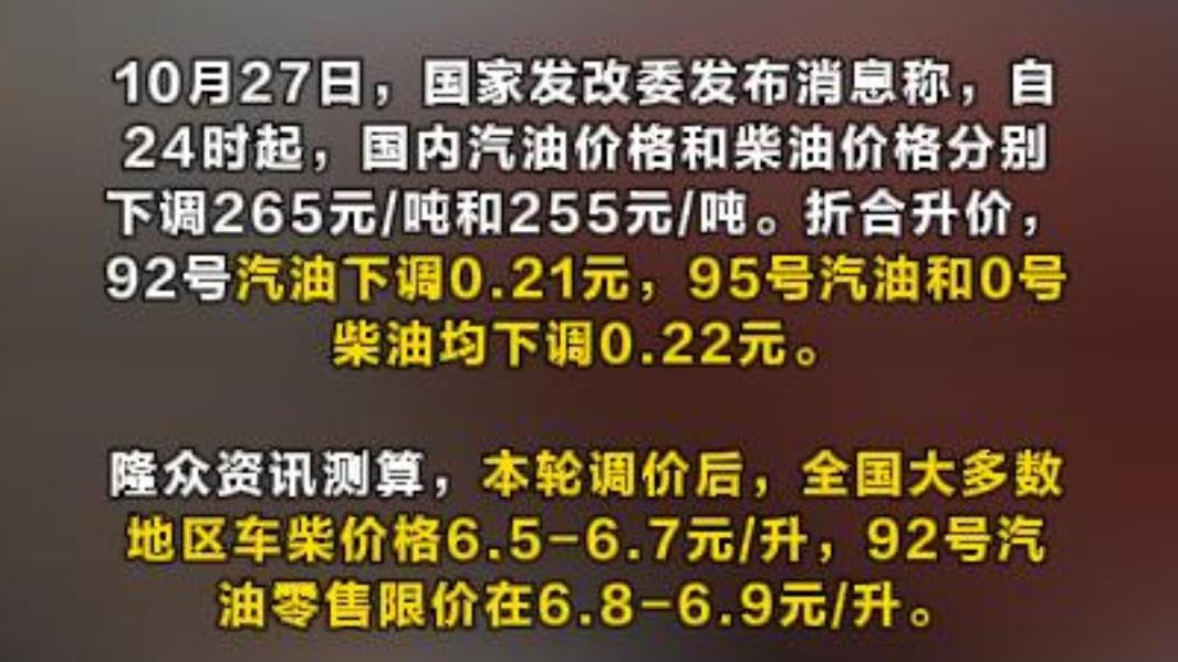 油價(jià)今晚下調(diào),92號(hào)汽油重回“6”字頭